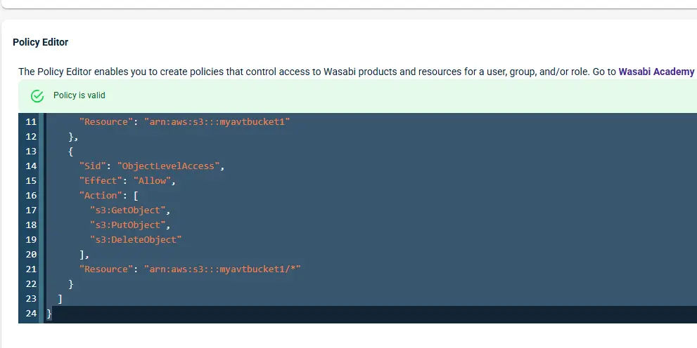 “Resource”: “arn:aws:s3:::myavtbucket1/*”